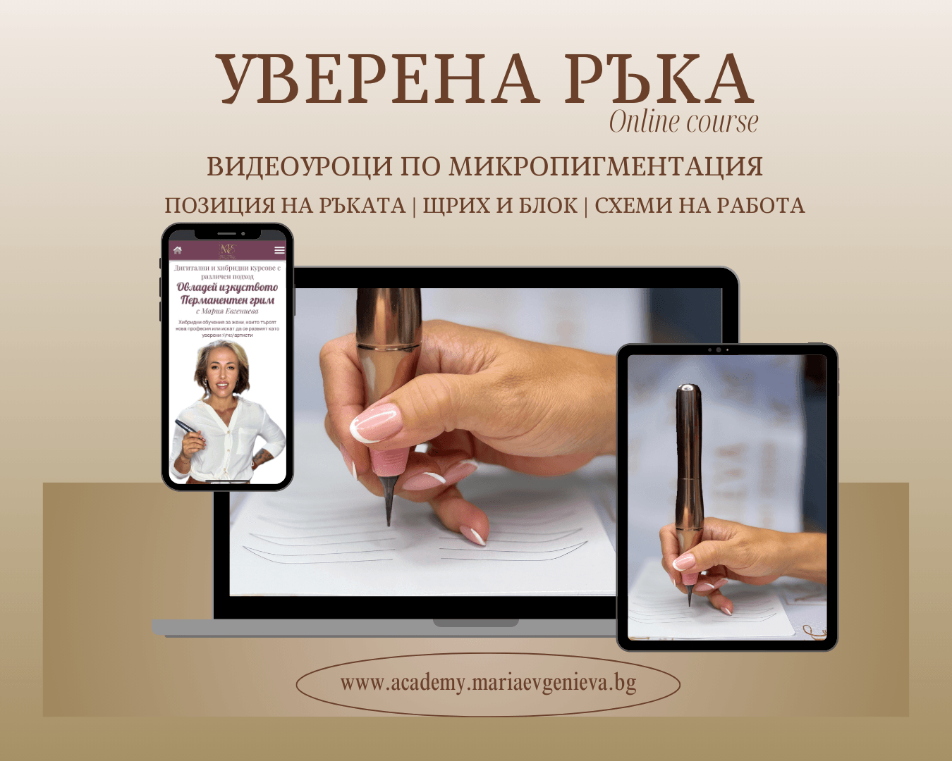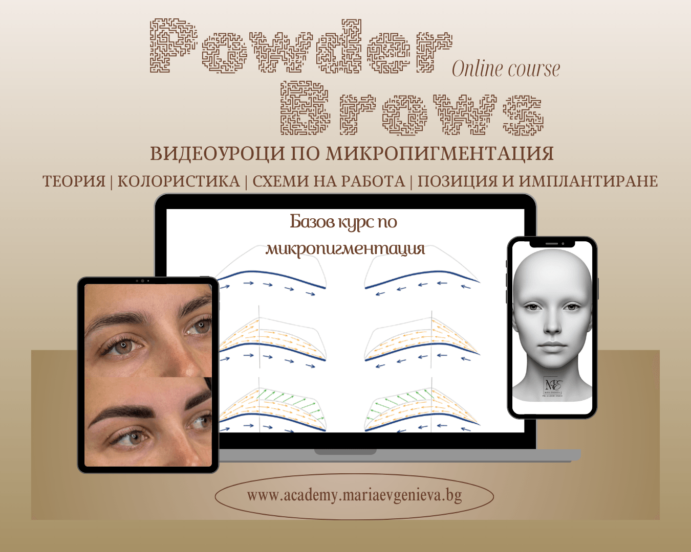Включва цялата теория за микропигментацията на вежди и всичко за техниката "Пудра вежди".
