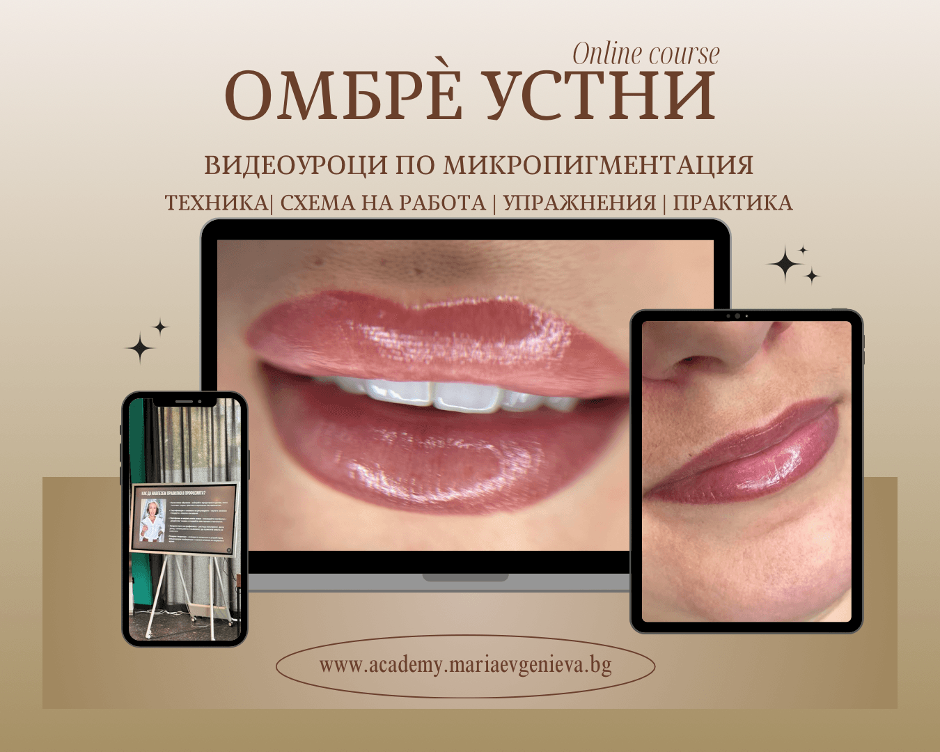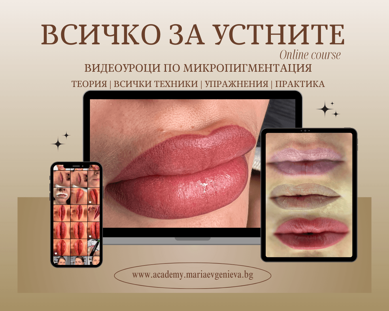 Включва цялата теория за микропигментацията на устни и всички техники за зоната.